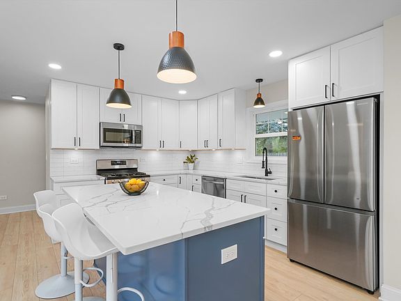 Absolutely STUNNING renovation on the south side of Country Club Hills! Wait until this three-bed & two-bath beauty makes your jaw drop with its modernized finishes inside & out in this down-to-the-studs rehab. You immediately feel the huge & voluminous rooms in this entire open-concept design with wide-plank white oak-styled flooring. Beautiful & trendy kitchen with white shaker cabinets, under cabinet lighting, quartz counters, and a full suite of stainless steel appliances. Great-room style main level with the kitchen open to both the dining & living rooms - perfect for your Holiday gatherings! The main level features a Pinterest-worthy chic & gorgeous bathroom! Wall-to-wall 3D & geometric tile, navy blue vanity, soaking tub, and all yellow gold fixtures bring this space together in modern harmony. The first level includes two spacious bedrooms, as well as your primary bedroom with plenty of closet space. The primary bathroom is beautiful in its simplicity with a stylish vanity, shower, and European accents. Stepping down into the basement, you have an additional enormous living room with a laundry area and two very flexible storage & recreation rooms. These versatile spaces are only limited by your imagination! New mechanicals, plumbing, electrical, lighting, roof, windows, flooring, and more to give you complete peace of mind in your new home. The fenced-in corner lot gives you more than a quarter acre of backyard and outdoor areas, perfect for Fido or your summer get-togethers. Adjacent to Vollmer Woods for all nature lovers, and right off of Flossmoor Road for easy access to all of Flossmoor & Country Club Hills have to offer. Schedule your showing with us today & fall in love with 19060 Birch!