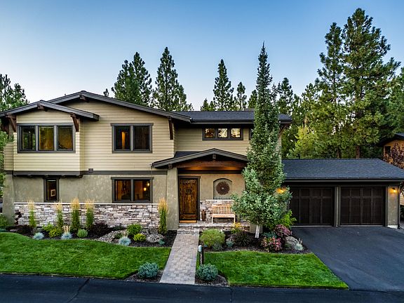 You don't want to miss this beautiful Craftsman home in Three Pines w/ close proximity to Shevlin Park. Entering the home, you're greeted by 18' ceilings, abundant windows, & a beautiful gas fireplace in the living room. Quality craftsmanship throughout including custom alder woodwork w/ 8' solid doors, built-ins, & rich hardwood floors. Spacious main level primary suite w/ soaking tub, dual headed tile shower, & walk-in closet, opens to a private patio & fenced backyard, backing to wooded area for added privacy. Enjoy the inviting chef's kitchen w/ granite counters, stainless appliances, Instahot, & island perfect for entertaining. Upstairs you'll find two additional large bedrooms, separate office, & huge bonus room w/ built-ins & peekaboo Cascade views. Other features include built-in speakers, central vac, Bali blinds, Nest doorbell & thermostat, 3+ car tandem garage, new exterior paint in 2021, south facing driveway, & more, all on Bend's highly desirable NW side!
