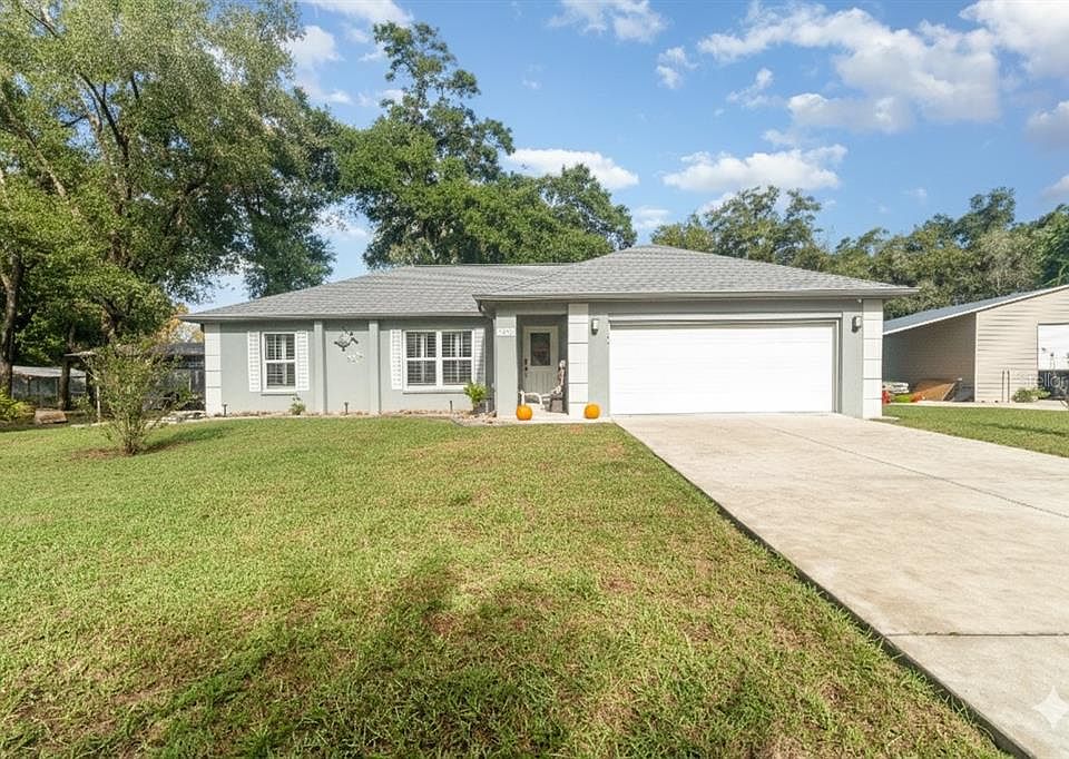Welcome to 19063 Saint George Drive, Dunnellon, FL — a 2021-built home combining style, function, and space! This 3-bedroom, 2-bath residence sits on a 0.69-acre lot with premium upgrades throughout. The kitchen features granite countertops, upgraded cabinets, and an open layout that flows perfectly into the dining and living areas. Enjoy tile flooring throughout, LeafFilter gutters for low-maintenance living, and a large fenced yard ideal for privacy or pets. The property also includes a spacious workshop that can fit a large RV, serve as a work or entertainment space, and comes equipped with EV/RV hookups. Located just 0.8 miles from Blue Run of Dunnellon Park, you’ll be minutes from kayaking, nature trails, and the stunning Rainbow River — while still close to shopping, dining, and local conveniences.(Pet on premise Appointment only ) Move-in ready and built for comfort — this home truly has it all!