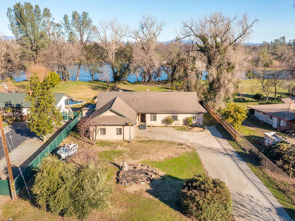 RARE SACRAMENTO RIVER FRONTAGE!! Breathtaking views and endless opportunities await on this 4 bedroom 2.5 bath Riverfront home on a large .80 acre lot! Vaulted ceilings, separate living and family rooms, wood burning fireplace with a brick floor to ceiling hearth and large kitchen with plenty of storage and breakfast bar. Indoor laundry, original built ins and updated hall bath. Lemon and apple trees, large front and back lawns, boat/ RV parking and River access. Established neighborhood just minutes from town.