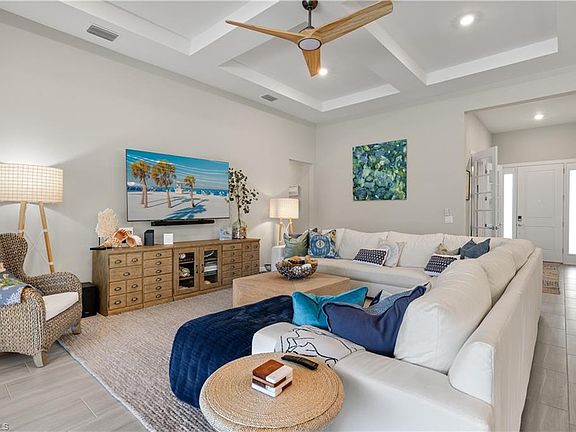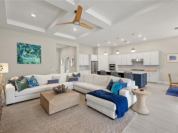 Welcome to Luxury Living in WildBlue! This Award-Winning Pinnacle Floor Plan features 3 spacious bedrooms, 3 full baths, plus den, and a 3-car garage. This home features an amazing custom pool/spa and custom interior designer touches throughout. Hurricane-impact windows and doors, plus a Generac natural gas generator make this home completely storm-safe. The beauty starts immediately as you enter into an expansive gathering room. The gourmet kitchen comes complete with natural gas, stainless steel appliances, quartz countertops, tile backsplash and white shaker cabinets. Tray ceilings, large owners’ bedroom, custom closets throughout, zero corner pocket sliding glass door, outdoor kitchen and custom designer finishes make this a dream come true. This home has been meticulously maintained, so nothing to do except move in and enjoy one of the most private streets in all of WildBlue. WildBlue is located just minutes from RSW International Airport and centered perfectly between Fort Myers and Naples. The location offers shopping, dining, and entertainment for everyone. WildBlue’s resort-style amenities, include approximately 900-acres of freshwater boating and fishing lakes, boat ramps, private lakefront beach, marina, private restaurant, pool bar, and a state-of-the-art fitness and wellness center complete with pickleball, tennis, basketball, yoga, aerobics, and a full-service salon.