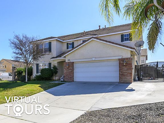 Every REX home comes with a 30-day buyback guarantee. Terms and conditions apply. **Property has fifth bedroom that is not currently reflected on the title report** Incredibly spacious two-story home located in excellent area of Orangecrest with sparkling pool, desirable open floorplan, exquisite Florentine tile throughout, built-in speaker system, high end plantation shutters, and a LUXURIOUS master retreat! Sitting on a prime corner lot, this beautiful home has 5 bedrooms, 3 baths, and 3,144 square feet of living space. A stunning two-story foyer welcomes you inside, as well as a spacious formal living & dining room. The chef's kitchen overlooks the open family room, creating the perfect spot for hosting & entertaining, and features granite countertops, center island, plenty of cabinet space, recessed lighting, large pantry, Whirlpool appliances, and French doors that lead to the backyard. Kitchen opens up to huge, bright family room with a cozy fireplace. Completing the main floor is a laundry room, guest bedroom, and full bath with a shower/tub combo. The remaining bedrooms are located upstairs and all feature plush carpet flooring. Huge master bedroom with double-sided fireplace, large separate retreat area, and an adjoining master bathroom with his & her walk-in closets, separate shower, and a sunken roman bathtub. Fantastic backyard area perfect for outdoor entertaining. Awesome fenced-in pool and jacuzzi, and lots of hardscape upgrades. 2 car garage and RV access on side! Just minutes away from shopping, excellent schools, parks, and restaurants. This home truly has it all! Virtual tours available. Join a live video call with an agent while they walk you through the home. Buyer to verify all information before close of escrow.