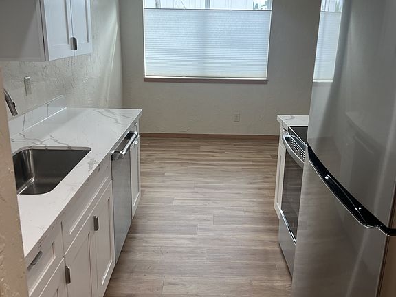 Newly remodeled 1 bedroom 1 bathroom apartment with fresh paint, new appliances, floors, kitchen and bathroom. Central heat & air. All new blinds. In a quiet 4-plex apartment building with easy I-5 access, secured entrance and free parking. Water & sewer paid by own. A must see beautiful apartment.