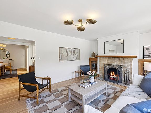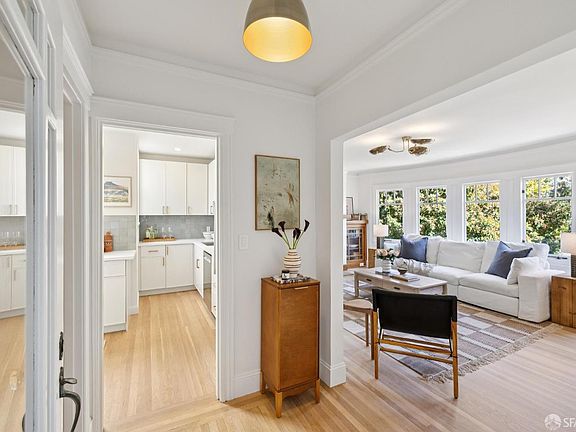 Sweet & updated Golden Gates Heights single-family home with ample sized rooms, period details, a lovely garden, and expansion potential. This lovely barrel-front home offers its signature spacious living room with curved windows with green outlooks, and an original fireplace with built-ins, ideal for entertaining and cozy nights at home. Adjacent is a formal dining room with room for a large table, connected to a remodeled kitchen with abundant storage, Zellige backsplash, and all new cabinets & appliances. Down the hall are two ample sized bedrooms and a back sunroom, great use as an office or kids playroom/bedroom. French doors off the sunroom lead to a private, sun-filled garden. A full bath and two linen closets complete this functional main level. Downstairs, a huge garage is ready for future development/expansion - plenty of space for a primary bedroom/bath, or family room etc. in additional to parking. Centrally located with quick access to the Inner Sunset, West Portal, Golden Gate Park, and many favorites on the west side of town.