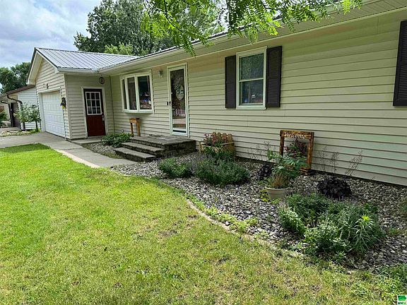 Welcome to this beautiful home, tucked away in the small town of Hawarden, IA! This is a 4-bed, 2-bath beauty that greets you with a rock garden near the front entrance and a driveway leading to a spacious 2-stall garage. Both front and backyards are very sizeable, featuring a walk-out hosting area for an exciting nightlife or personal relaxation time! The new tin roof is sure to give sensory sensations whenever the rain comes and natural light flows through the house with a number of well-placed windows. The kitchen and dining area are open concept and adjacent to both the living room and a 3-seasons room. The kitchen comes with appliances and features a serving area facing the dining room area for easy entertaining. Living area has a large bay window to watch any Iowa weather conditions play out! Down the hall of the first floor there are 3 bedrooms neatly placed by one another near a full bath, which was recently renovated. The basement was also renovated recently and brags new washing/drying machines, elegant vinyl plank flooring, an additional living area, and a 4th bedroom with French doors and a walk-in closet.