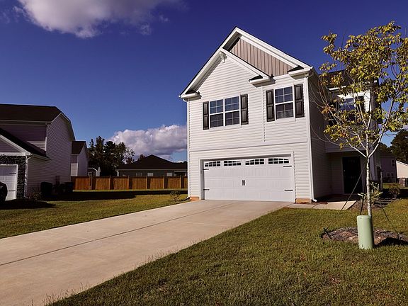 Fish from your backyard! Open floor plan, 4 bedrooms, 2. 5 bathrooms, 2 car garage, in a cul de sac. Downstairs features: Foyer, half bathroom, living room, spacious kitchen with an island, pantry, and a large eat-in area. Upstairs features: 3 comfortable sized bedrooms with great closet space, a full bathroom with dual sinks, a laundry room. Also upstairs a large primary with a full bathroom that has dual sinks, and a walk-in closet. Large open backyard with access to a pond. Close to Shaw AFB and Town!