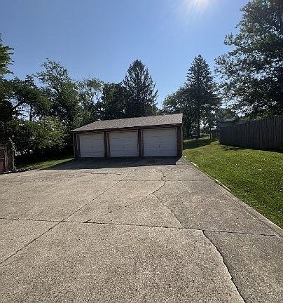 1 space Detached garage -Concrete driveway -Forced air heating - Central air conditioning -Brick and wood siding on a slab foundation.
