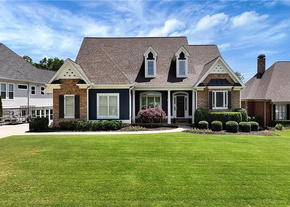 Back on the market through no fault of the seller. Beautifully updated and Move -in-Ready! Six Bedroom and Three Bath Craftsman Home in Traditions of Braselton! Level front yard and Backyards are great for kid and entertaining. Gorgeous views from the front porch, back deck, and screened porch. Newly renovated kitchen with updated lighting that opens to the family room with a stone fireplace and coffered ceilings. Real hardwood floors throughout the main level. Hugh Master Suite with a setting area and a newly remodeled en-suite. Additional large bedroom and bath on the main level. Open concept with Many Custom Touches, including built-in cabinets, mudroom, new fireplace mantle and shiplap. Three additional bedrooms up-stairs with large closets and a cozy loft area with built-in cabinets. Finished basement with a office, family room, workout room, kids rec. room, and tons of storage. It even has a concrete tornado shelter. Covered downstairs patio has a new installed under-deck drainage system, along with a fire pit area. Updates include new front door, exterior paint, and new radon mitigation system. Backyard privacy is enhanced by home backing up to "Green Space" property owned by the Traditions of Braselton Community Association. Amenities include clubhouse, Jr. Olympic pool and waterslide, three lighted tennis pavilions, pickle ball court, playground, 24-hour fitness center, and the ClubCorp Golf Course with Bar, Restaurant and Pro Shop! Luxury living in a Country Club setting! Come check this one out. It is a must see.