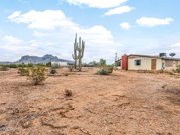 This rare 5-acre flat horse property offers breathtaking views of the Superstitions and Four Peaks. Whether you're dreaming of designing your own ranch home or exploring the option to subdivide, the possibilities here are endless. Main home is 2 bed/1 bath, wood burning fireplace in living room, full kitchen and utility room with washer & dryer. Casita is full kitchen, 3/4 bath and 1 great room. Saddle up and ride off your property to miles of desert trails, Dutchman's Hideout, The Hitching Post, or even the legendary Ghost Town for a one-of-a-kind lunch experience. Not a rider? You're still surrounded by adventure-choose from countless nearby trailheads for hiking, or head 25 minutes down the road to Canyon Lake to boat, paddle board, or swim. This unique property includes two homes with brand new electric meters, plus a private well-a huge advantage in the East Valley. Come experience the beauty and opportunity waiting for you on this rare property.