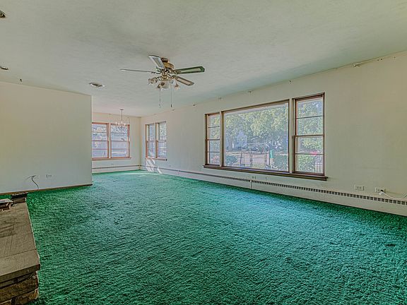 This all-brick ranch home sits on a large double-lot and is attractively located just blocks from Shiloh Park and downtown Zion. Enter through the front door into the large living room featuring a fireplace focal point with stone surround, a large wood-frame picture window, and adjoining dining area. Sizable bedrooms. Large enclosed porch, heated, three walls of sliding glass doors and built-in grill -- perfect for entertaining! Finished basement with bar top and workshop with workbenches. Shed in backyard for extra storage. Two-car garage. Opportunity to add value to the home. Selling AS IS.
