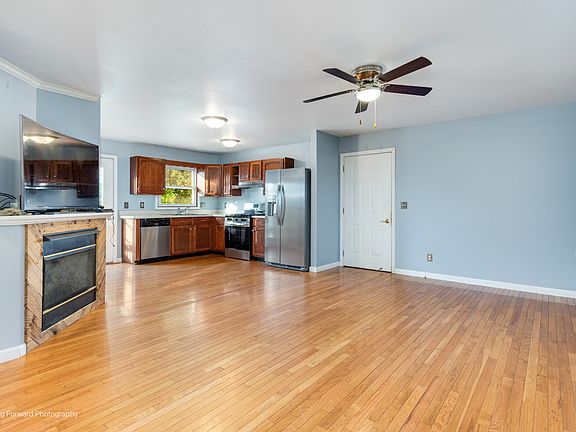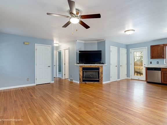 Welcome to the Lake! This thoughtfully updated ranch offers modern comfort in a private community setting. Inside, you'll find fresh paint, hardwood floors, and an open-concept living area anchored by a cozy gas fireplace. The kitchen is equipped with new stainless steel appliances, while two spacious bedrooms feature brand-new carpet and paint. The fully finished basement extends your living space with rustic cabin-style finishes and a full bathroom - perfect for entertaining or unwinding. Outside, enjoy a large lot with no rear neighbors, a new concrete patio, and a privacy fence for added seclusion. Move-in ready and full of charm, this home offers the ideal blend of updates, space, and peaceful surroundings