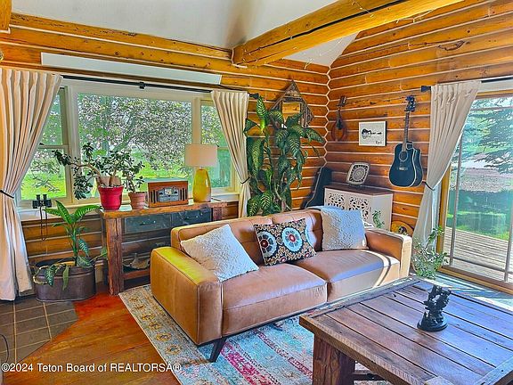 This is the perfect Teton Valley ski cabin with the good bones! A custom-built log cabin in the coveted subdivision of Targhee Ranch. Outside you will find beautiful outdoor living spaces including a large deck, a functioning green house, mature landscaping, two car detached garage and a wood heated rustic shed. On the inside it is easy to enjoy the thoughtful use of space in the open concept living room/kitchen, a main floor master and guest room. The open staircase reveals a large loft area offering additional family living space, another bedroom and full bathroom.