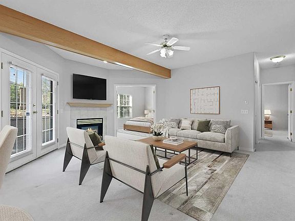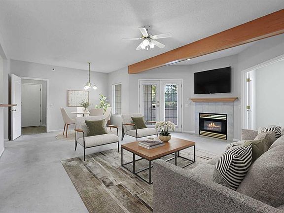 Bright open-concept layoutBeamed ceilingsRich architectural detailsAbundant natural lightCozy gas fireplaceSpacious dining areaWell-appointed kitchen