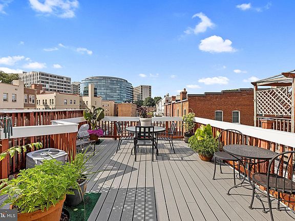 7 September open house 2:30 to 4:30 pm. NO SIGN on property. Real estate sign is for house next door, not 1907 S Street. The best part of a former house on the 2nd and 3rd (top) floors with an extensive private roof terrace and on-site owned parking is included. Bay-front living room with fireplace, modern kitchen, two full baths and two bedrooms plus upstairs den above primary bedroom. Skylights, exposed brick, high ceilings, wood floors, low condo fee, in-unit washer and dryer and on a street of restored Victorian houses and buildings just a few blocks from the Dupont Metro station, Kalorama, farmer's market, etc.