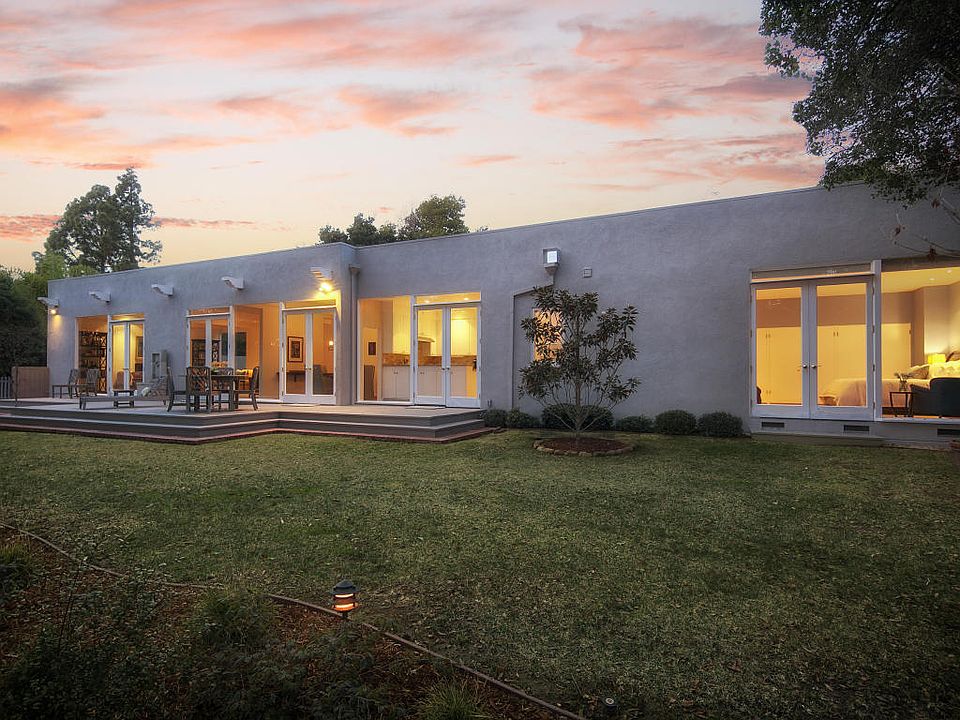 Tucked down a drive sits a light & bright contemporary residence w/ walls of glass & soaring ceilings. The 3 bd/3 ba single-level home enjoys bamboo flooring, French doors, marble ba, formal dining room, den, eat in kitchen, newer stainless steel appliances & granite counters, courtyards, large deck, gardens & mature oak trees. W/in the highly rated MUS district!
