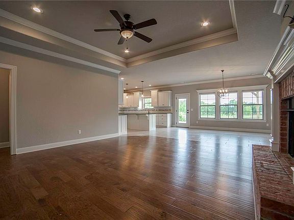 This home features an impressive kitchen and spacious room sizes! This stunning home features custom cabinets, granite counters, stainless appliances, gas fireplace, covered patio, gutters and more!