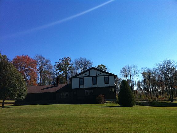 Brick, tutor style, well maintained, move in ready home. Twelve rooms with laundry on main floor. Wood burning fireplace, large kitchen, ample closet space including a walk in closet. Over sized 2 car garage, screened in porch off the family room and a back deck off the dining room. The dry basement is poured concrete with a high ceiling. There is also a 36 x 23 foot, Tudor style storage building on the property. To be enjoyed, is your own back yard oasis with a pond and partially wooded 10 acres.