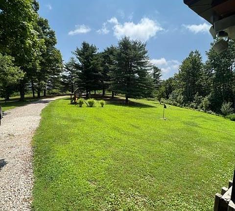 Charming Cabin on a beautiful 10 acres wooded lot. If you love Cruising your motorcycle down picture perfect country roads or spending time in the woods in search of that trophy Buck this is the property for you. Enclosed porch welcomes you as you enjoy watching the kids play in the front yard while the french doors give access to the great room with plenty of space for family. Large eat in kitchen to enjoy prepping for the family cookout or a quiet dinner enjoying nature. Large primary bedroom and guest room on the 2nd floor with with additional den or office space. 1st floor laundry when you return from the woods and spacious full bath. 24x32 pole barn for plenty of storage for hobbies, boats, side by side or equipment. includes fixed hunting shanty and kubota tractor with loader.
