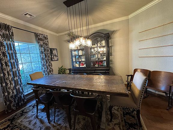 Step outside into the fully fenced backyard, ideal for kids, pets, and entertaining. A permanent adjustable basketball goal and small court area make it a standout space for play and recreation. For the hobbyist or handyman, the three-car garage includes a temperature-controlled attached workshop area—perfect for year-round projects.