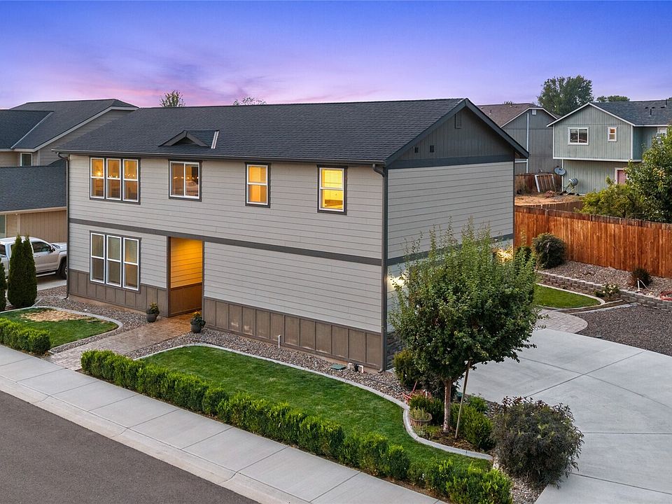 Unique & meticulously cared for 2,268 SqFt home with flowing floor plan, upgrades galore & the benefit of a large corner lot! This 3 bedroom, 2.25 bathroom home has the perfect layout giving you an open kitchen w/granite counters & two tone cabinetry, modern dining space & light filled living room. You will fall in love with the generous sized bonus room perfect for movie night, hobby room or a home gym. Upper level features the spacious primary bedroom w/ ensuite + 2 closets, 2 additional guest bedrooms + full bathroom & laundry room. Outdoors relax and unwind on the custom stamped+stained concrete covered patio or enjoy the beautiful lush landscape & garden areas. Attached 2 car garage, expansive driveway + extra storage/parking space.