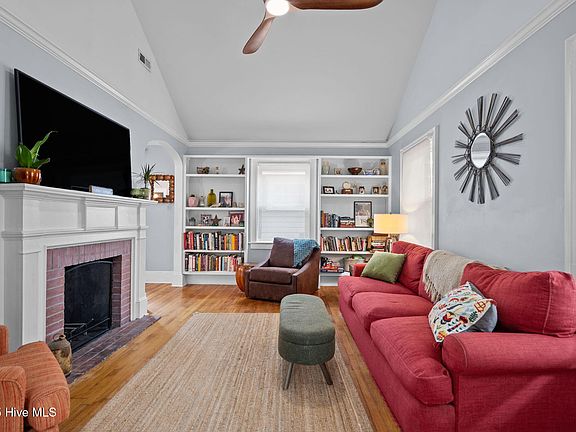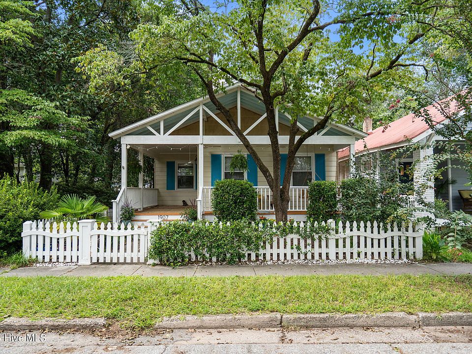 Welcome to 1907 Wolcott Ave., where beach bungalow meets historic charm. This 1950's home is located in the heart of historic downtown's sought after Carolina Place neighborhood. This 3 bed, 2.5 bath home has many updates, yet retains much of it's historic charm. The vaulted ceilings and built in bookshelves in the living room bring a touch of modern, while it retains the original hardwood floors, brick fireplace and arched entry to the rest of the house. The dining room, which is open to the modern kitchen, is great for entertaining and includes a gas range and pantry. Enjoy an additional sink and prep area, adjacent to the stackable washer and dryer in the mudroom. The primary suite is located at the back of the house with vaulted ceilings, an en suite bathroom, a walk in closet and a private entrance to the screened porch. The additional 2 bedrooms share a Jack and Jill bathroom and an additional half bath is located off of the kitchen and dining area. Enjoy meeting your neighbors while sipping a cup of coffee on your front porch or enjoy some privacy on the screened porch or the new deck in the low maintenance, xeriscaped backyard. With an encapsulated crawlspace, complete with a dehumidifier and a termite bond, this home is move in ready and worry free. Carolina Place is known for its welcoming sense of community where neighbors often gather in Wallace Park or meet at a local restaurant or bar in the Cargo District. This location is also very convenient to the Soda Pop District and the Historic Riverfront Downtown, 3.2 miles to Wilmington International Airport and 8.4 miles to beautiful Wrightsville Beach. Showings will begin on August 29, schedule yours now!