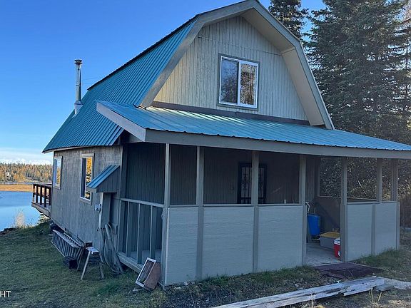 Lake front cabin with Mountain views. Build your dream home on the 1.6 acre lake lot while living in the cabin. Enjoy the large deck overlooking the the Lake in the summer and wood stove inside during the winter. Cabin needs leveled and water line installed from the well to the cabin. Encelewski Lake is a floatplane Lake that is stocked by F&G, Lot lines have been surveyed.