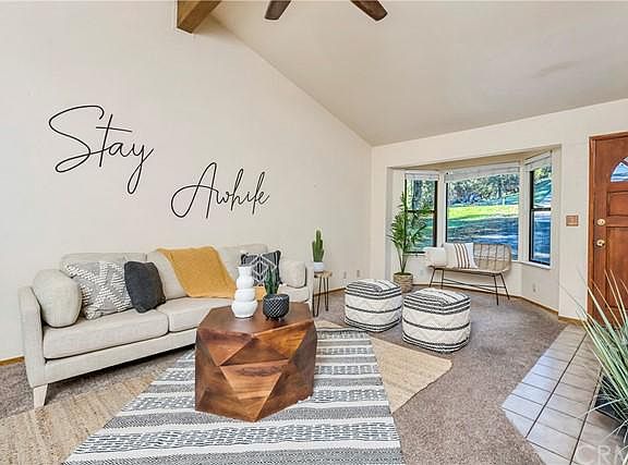 HIDDEN VALLEY LAKE CHARMER! This sweet 2bd/2ba home sits on a private location on the desirable Moon Ridge Rd. loop, just a few minute drive to the HVL golf course & restaurant, local shops and the school. Enter to the comfortable and cozy living room to find vaulted ceilings & a wood-burning fireplace. The kitchen offers an upgraded flat-top range, dishwasher, fridge & views of the backyard. A spacious dining area has a slider that leads out to the back deck and patio and overlooks the oversized, fully-fenced backyard. Two nice sized bedrooms each have their own bathroom, and there is large utility/laundry room as well! This home also features new exterior paint & new roof in 2015! Located in the gated community of Hidden Valley Lake - enjoy the private lake, 18-hole championship golf course, pool, parks, playgrounds & more!