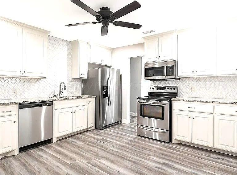 The home also has brand, new windows, plumbing, and electrical, brand new, central heat, and air, new roof, new windows, and ceiling fans for energy efficiency.