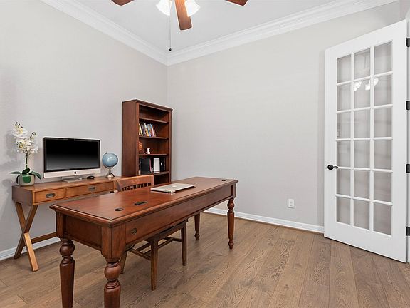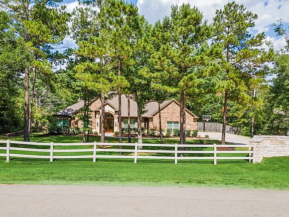 Stunning 1.5 story custom home on 1 acre nestled in the highly sought after Dominion Ridge backing to a private wooded greenbelt. 5 BR's (4 down, 1 up), 4.5 baths + an oversized 3 car garage. A true guest suite down with its own bath. Study with French doors & oversized formal dining feature wood floors, tile floors in main living areas. Spacious family room open to the elegant island kitchen w/wine area + a must see oversized walk in pantry. Huge primary suite with spa like bath & huge closet. New plantation shutters & freshly painted interior, crown molding, on trend colors, tray ceilings. Upstairs offers a huge game room, a media room, the 5th BR + a full bath. Enjoy the beautiful wooded view from the downstairs covered patio or the upstairs balcony. LOCATION LOCATION LOCATION! Just 3 minutes to I-45 & 15 minutes to The Woodlands. This lot is amazing & extends approximately 125 feet past the fence in the back (see attached survey). Upgrades, seller favorites & floor plan attached.