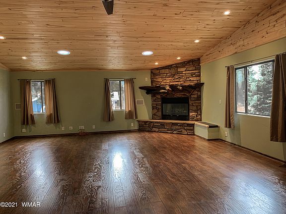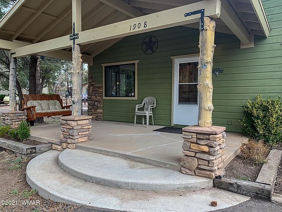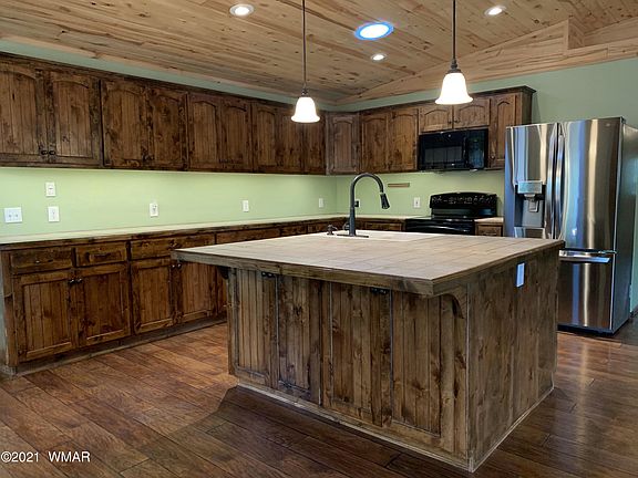 This gorgeous single level cabin in the pines has so much to offer! Inviting front porch opens to a large greatroom with open floorplan. Vaulted ceilings with aspen T&G. Large master bedroom with huge walk-in closet, soaking tub and walk in shower. Radiant in floor heating and water softener. A screened in back porch leads to a fenced yard with a nice paver patio area. There is a detached 12x12 craft/work shed and a large side yard that could accommodate an RV. An attached tandem 4 car garage offers plenty of room and workspace as well as asphalt driveways.