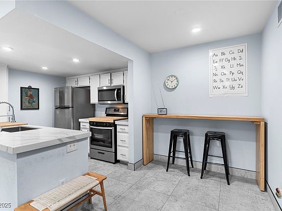 A true gem in Summerlin! This beautifully updated ground-floor condo offers 1 bedroom and 1 bathroom with modern finishes throughout. Enjoy large tile flooring, quartz countertops, stainless steel appliances, a stylish modern bathroom vanity, and a freestanding shower. Located in a gated community close to freeways, shopping, dining, and parks. HOA is only $143/month and includes water and trash. Community amenities feature a sparkling pool, relaxing hot tub, gym and private gate access to nearby walking trails. FHA-approved community—perfect for first-time buyers or investors! Don't miss out on this great opportunity in a vibrant and friendly community.