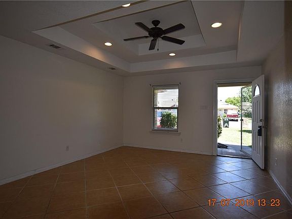 Beds, 2 full baths and 1 car garage. Huge backyard. Open floor plan connecting living, kitchen and dining area. Very spacious kitchen, brand new appliances, refrigerator is not included. Flooring: Ceramic tile and carpet. Separate utility room. Gutters installed.
