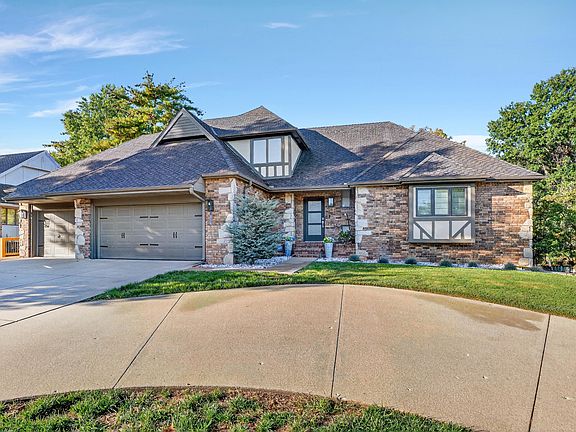 This remarkable home is in beautiful Spring Creek and has wonderful amenities and updates! The story and half home is all brick with stone accents and a 3 car garage with a circle drive. The interior offers a 2 story foyer that opens to a light and bright great room with a vaulted ceiling and beautiful gas fireplace. The crown molding and woodwork add so much to appreciate in this fabulous home. The kitchen is a masterpiece with painted cabinetry, leather granite countertops, Thermador 3 burner gas cook top, warming drawer, 2 ovens and a subzero refrigerator. Two laundry rooms are available on the main floor, 1 just off the kitchen and 1 in the master bath. A kitchen dining area plus a formal dining area both have wood flooring that is all on the main floor as is a half bath. The master suite is very spacious with leather granite countertop, dual copper sinks, tile flooring, a whirlpool tub, walk-in shower, private toilet area and separate large walk-in closet complete this ensuite. Upstairs are 2 large bedrooms, full bath with barndoor and a 2nd area for a living area or bedroom. Down stairs you will be pleased with a large family room, stone gas fireplace, 2 more bedrooms and a beautiful updated bath with a large walk-in shower. A kitchen wet bar and lots of storage complete the downstairs. More pluses to this home are a house generator, updated Lenox HVAC, updated roof, newer large deck, light fixtures and more. This home has been lovingly cared for and is move-in ready!