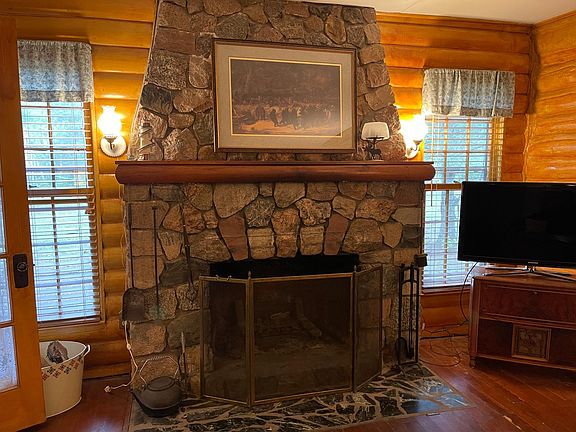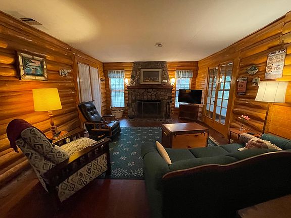 Start making memories in this "Up North" Vintage Log Cabin located on Five Point Lake with perfect level elevation to the 125 feet of shoreline and 1.88 acres of land, there's ample space for outdoor activities, campfires, gardening, or simply enjoying the natural surroundings. The charming and cozy cabin features 2 bedrooms, recently remodeled bathroom, nice stone fireplace and sunroom for playing games, relaxing or extra sleeping space. Also included is a 20 x 34 detached garage that has RV hookup, 12 x 36 bunk house/garage, fish cleaning shed, dock, boat lift, and canvas storage shed for your boat. Located only a few minutes from Hackensack and Backus for all your shopping and dining needs. The large pine trees enhances the beauty of this property, adding to its rustic and natural charm, makes this log cabin a place where you can truly enjoy the tranquility and serenity in this nature-filled getaway.