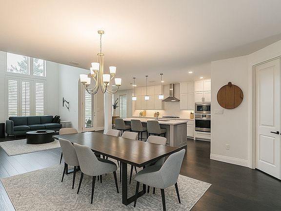 Step inside to discover a thoughtfully designed first floor that includes a spacious guest bedroom with a full bath, a private home office, a formal dining room, and a luxurious primary suite with spa-like bath. The open-concept kitchen is a chef’s delight, boasting an oversized island with seating, shaker-style cabinetry, and seamless flow into the dining and living areas—ideal for entertaining. The living room impresses with soaring ceilings, recessed lighting, and expansive windows that fill the space with natural light.