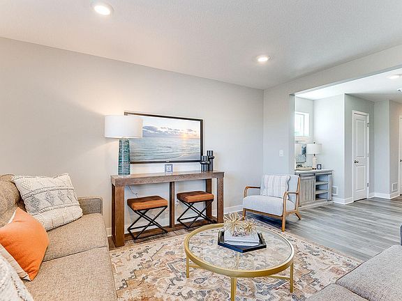 The Duet is a cozy 4 bedroom twin home offering hard flooring throughout the main level, a kitchen with cabinet pantry, quartz countertops and stainless appliances, and a spacious living room. Upstairs the laundry room is located conveniently by the bedrooms, and the bedroom suite feels luxurious with a private bath and walk-in closet. Unbeatable location just 1.0 mile from Route 169 in the highly rated Shakopee Public School District. Adjacent to 80 acre park with walking trails, etc. A must see!