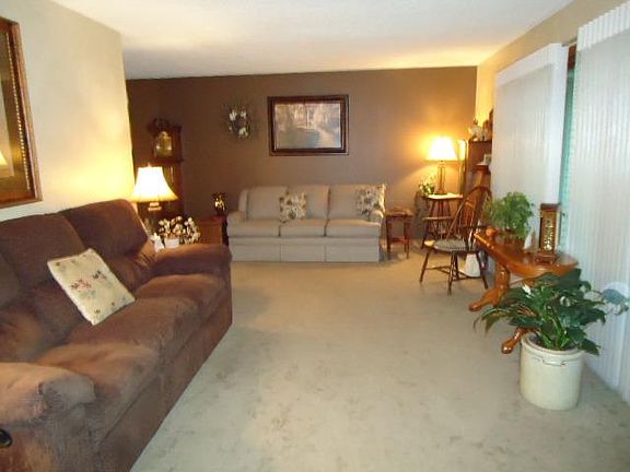 A little bit of country with this property located approx. 1 mile south of Algona. A large ranch home with over 1700 sq. ft. 3 bedrooms and 2 baths with a separate living room & cozy den area w/ fireplace. Kitchen with lots of cabinets & partially finished lower level. Screened porch over looking wooded backyard & additional storage building.