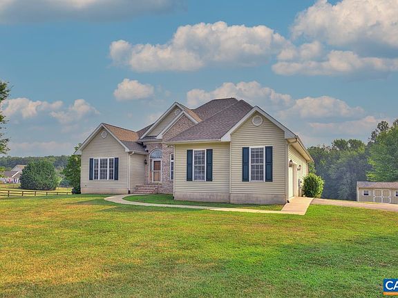 Beautiful Custom Built Home on two plus acres minutes to Zions Crossroads shopping and I64. NO HOA! Elegant foyer, 9 and 10 ft. ceilings, home office, formal dining room, floor to ceiling custom stone fireplace, open sunny eat in kitchen with granite counter tops, cherry cabinets and gas range. Popular split bedroom design. Master suite with tray ceiling, attached bath with double vanity and custom walk in closet. Drink your morning coffee in the breakfast nook or enjoying the view from the screened in porch with access from the kitchen or master bedroom. Terrace level with bedroom, full bath, family room, music room / home theatre space and unfinished storage area. This former Parade Of Homes Winner offers the opportunity for elegant , peaceful living minutes from shopping, dining and convenient to Charlottesville and Richmond. New Hot Water Heater and HVAC.