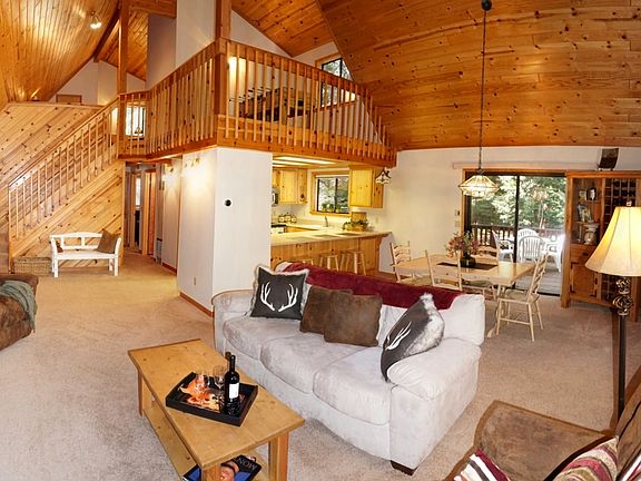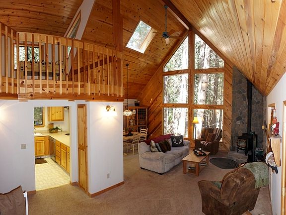 Located in the desirable development of “Big Trees Village” in Dorrington, CA is this fabulous chalet styled cabin surrounded by natures pines in a very private setting. With vaulted knotty pine ceiling, desirable open floor plan, floor to ceiling cathedral windows and a touch of rustic flair….this cabin is what dreams are made of! Priced at only $349,000 with 3 bedrooms, 2 full baths, 1,632 sq. ft., built in 1991 by a local & well respected builder, John Maynard & newer SS appliances. The second level has an oversized master bedroom retreat with private bath. Overlooking the great room is an open loft for extra sleeping, game/media area or office…your choice. This well laid out floor plan can accommodate all family members & friends. The tranquil privacy off the large back deck is perfect for entertaining or just melting away the everyday stress. NATURE ENTERTAINS YOU…IT’S THE MOVING PICTURE IN YOUR DAILY LIFE! OPTIONAL HOA includes 2 pools, tennis, basketball & snack bar