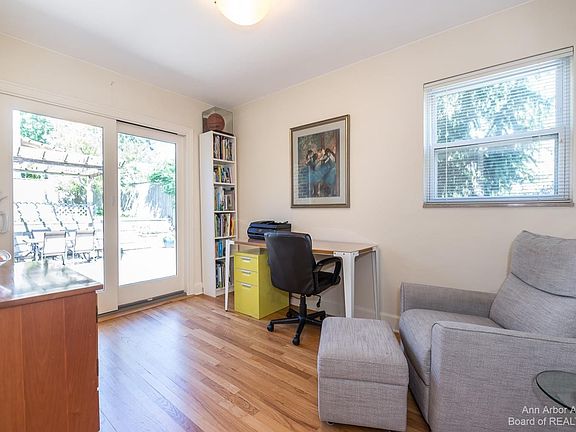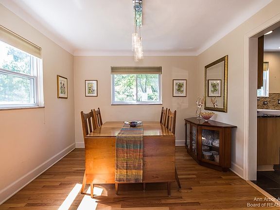 Located in WILDWOOD subdivision, this 1940's classic brick home is located steps away from Maryfield Wildwood Park and within walking distance to Kerrytown and the downtown area. Vintage front foyer with floor tile design and coat closet, hardwood floors on the 1st floor. Large family room filled with natural light, crown molding and plaster cove walkway into the formal dining room. First floor study w/sliding door leading to multi-level brick patio, with pergola and outdoor cooking area. 1st floor bedroom w/overhead lighting, and renovated full bath with modern cabinets, 12 x 12 slate flooring, soaking tub/shower combination and tile surround. Updated kitchen with s/s appliances, granite countertops with tile backsplash, custom wood cabinets and modern tile flooring. Second level has a vintage beadboard wall feature and a primary bedroom with overhead lighting plus a third bedroom. Recently finished lower level with great room/office, new flooring, Crawford ceiling with lighting, full bathroom with tile shower and glass door, plus tons of storage. The Laundry is located in the lower level. Two car garage with storage and wonderful side yard with plenty of room for the kids to play!