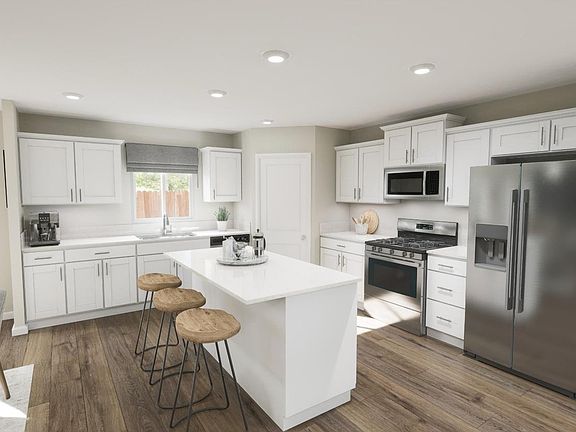 This two-story, open-style home is perfect for a large family. This home has five bedrooms, two full bathrooms, a powder room, family room and living room within approximately 2,108 square feet of living space. The kitchen features shaker-style cabinetry with satin nickel pulls, beautiful quartz countertops, a walk-in pantry, a center island with snack bar, and Whirlpool® stainless-steel appliances including a range, microwave and dishwasher. The adjoining great room and dining room make this area the perfect spot for entertaining guests. On the second floor, you will find the main suite with adjoining bathroom with dual vanity sinks and large walk-in closet, four bedrooms, a full bathroom with dual vanity sinks, laundry room and an extra-large storage closet.