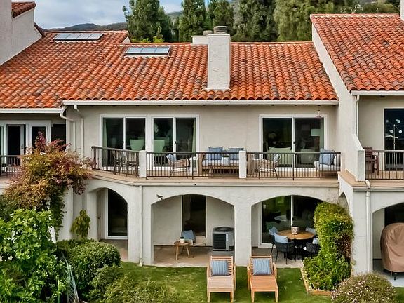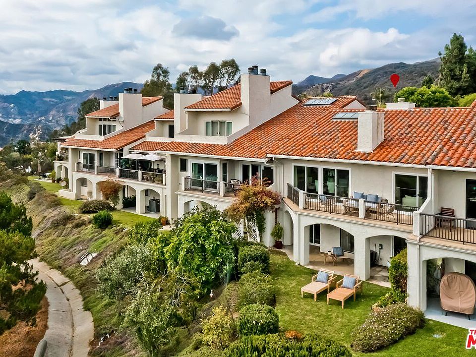 Live like you are on vacation! A rare find bright townhome in upper Highlands Vista Del Mar with tranquil views of mountains, ocean & Catalina Island. Gated privacy with a welcoming courtyard entry. Living & dining rooms with vaulted ceilings & a wall of glass that offers access to the large, view-facing balcony. Wonderful center-island kitchen with breakfast area off office/den with fireplace. Downstairs are two spacious bedroom suites the primary enjoys a walk-in closet, spa-like bath, fireplace and access to a covered patio plus beautifully-done garden/yard. Two-car garage with direct entry and additional storage. Hiking trailhead nearby. Convenient to shops, restaurants, parks, Palisades Village and more. HOA amenities include: pool, spa & paddle tennis. Second HOA includes Palisades Drive Rec Assoc. for $25/mo. Seller does not know the condition of the fireplace/chimney and will not do repairs or give credits. Inclusions: TV, speakers, some potted plants. Front jasmine plant is excluded.