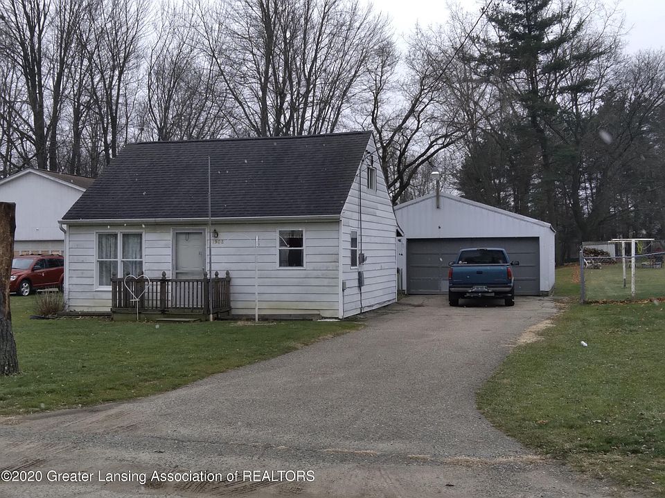 Great starter home! 3 bedroom, 1 bath with newer windows, roof. Huge lot, 26 x 32 garage, covered deck off of garage. Close to Hawk Island Park, bus line & MSU. Refrigerator will be switched for another. Immediate Occupancy!