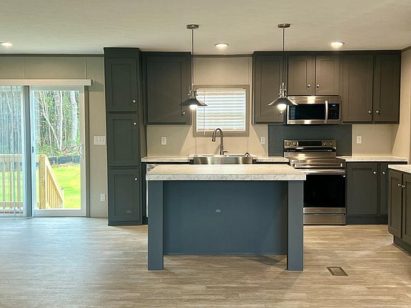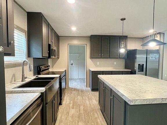 Experience spacious country living in this impressive 3-bedroom, den, 2-bath Clayton Home. Set on a quiet road, surrounded by rural scenery, this home blends comfort, practicality, and modern finishes in a way that's perfect for anyone craving space to spread out. Step inside to an inviting open floor plan, known for its generous living area and signature Clayton upgrades with 3-inch wood-look vinyl flooring, recessed lighting, dark gray cabinets, and window blinds. The bright and spacious kitchen features Samsung stainless steel appliances, a large kitchen island, and plenty of counter space which is ideal for gathering, cooking, and everyday ease.