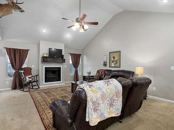 OPEN HOUSE SUNDAY 1-3PM You won't want to miss this charming 3 bedroom, 2 bath home on a quiet cul-de-sac. It is convenniently close to shopping and schools. The exterior is brick with stone accents and siding. A welcoming covered front porch and mature landscaping. Inside, you will find a spacious living room with a cozy gas fireplace and vaulted ceilings. The kitchen is great for entertaing with a bar and large dining area. Perfect for large gatherings. You will find double doors that go into the laundry room off of the kitchen. It is so convenient and leads to the garage.The bedrooms are spacious and have plenty of closet space for all your needs.The master suite boasts of a tray ceiling along with a larg.e walk in closet and a double vanity bath. This home does not disappoint with its special features. large windows, and unique charm. See it today