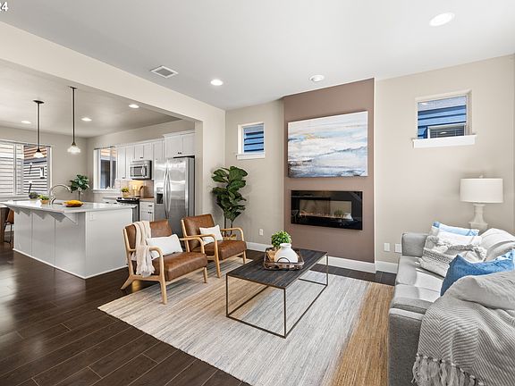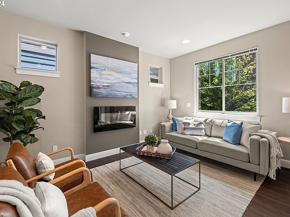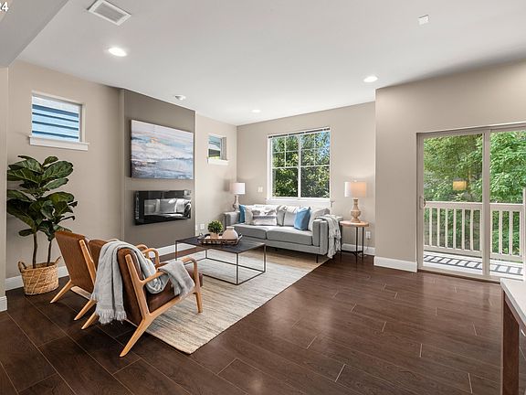 This Beaverton beauty is situated in the desirable 45° Central community. Enjoy lots of natural light throughout the open floorplan with high ceilings and lots of modern touches. Spacious living area with gas fireplace flows beautifully into the gourmet kitchen with slab quartz island and counters, stainless-steel appliances, and ample storage. Lovely separate dining area overlooks the covered deck with neighborhood views and sunshine. Second deck off the living area ensures plenty of outdoor space to enjoy the summer weather! 3 bedrooms on the upper level including the large primary bedroom with ensuite bathroom and walk-in closet. Additional bedroom on the lower level can double as a home office, gym, or guest room- lots of flexibility for the space! Improvements include newly painted exterior wall and deck rails in 2023, new carpet for all bedrooms, hallways, and stairs. HOA fees include community parks, clubhouse, gym, pool, common areas, and front yard landscaping. Club house and outdoor community pool managed by HOA is the perfect spot for a summer gathering, birthday party, or relaxation. Truly fantastic location steps away from Nike HQ. Conveniently located next to VillaSport + close to trails & Tualatin Hills Parks & Recreation District, two blocks from Costco, Winco, Best Buy, and Cedar Hills Shopping Center. Easy access to HWY 8, 10, and 26. Move-in ready. Don't miss it!