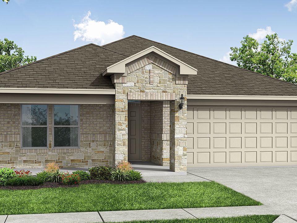 The Lexington plan offers an open concept design with beautiful California-style kitchen, large island, and vaulted ceilings and a Texas-sized walk-in pantry for small appliances and storage. The elegant owner suite offers separate shower, garden tub, dual-sink vanity and large walk-in closet. Spacious, private secondary bedrooms and separate laundry room.