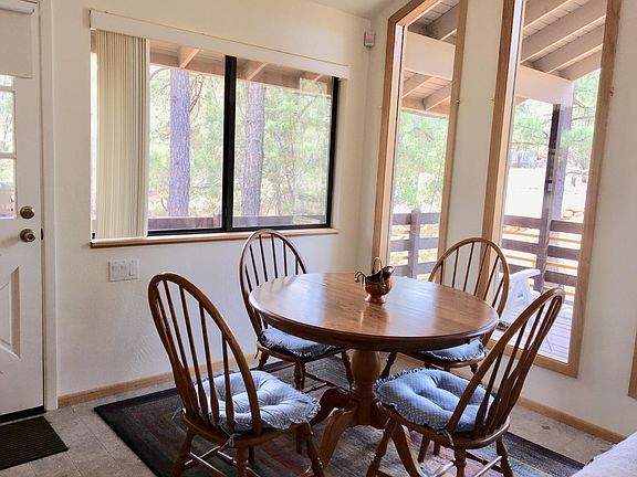 Cabin in the woods of Overgaard. This home is truly nestled in the towering ponderosa pines giving you a feeling of seclusion. Open the front door to the 2 story vaulted ceiling with unique windows and large french doors bringing the outdoors in. Open floor plan with breakfast bar and large eating area. Main level has a ranch feel with 2 bedrooms and a full bath and plenty of storage. The lower level boosts the workshop, garage, laundry and a bath with extra space that could be converted to more living space with plenty of windows, even heat and AC. The covered deck is large and even wraps around the entire home. Plenty of parking of guests and the yard is spacious. So much to mention. Even the furniture may stay. Move right in.