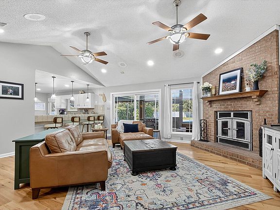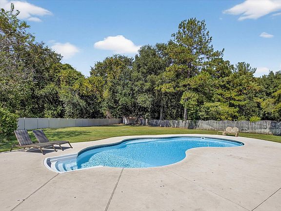 PRICE REDUCED!! Back on the market, Buyer got cold feet. Home in great condition. This beautifully updated home on a quiet, dead-end st in a desirable gated neighborhood. A spacious 4BR/2BA split-plan home feat an office, an open kitchen w/bar, island cooktop, & double ovens. Updated lighting & natural light highlight the engineered wood flooring (no carpet!) & ceramic tile in baths, & office. Enjoy the massive sun porch overlooking the resort-style pool area (safety fence included). The sunroom is equipped w/ removable vinyl windows (included in sale), offering an easy conversion to heated/cooled sq footage. Lush landscaping adds to the priv, serene feel of the 1 ac lot. Also includes a 2-car rear-facing gar, privacy fence, private well, ample room behind the fence for RVs or toys. Quick easy access to I-10 & shopping!
