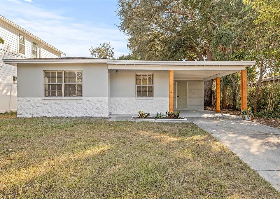 Welcome home to this inviting 4 bedroom, 2 bathroom residence offering charming curb appeal and a fantastic central Tampa location. Situated outside of a flood zone and featuring a convenient carport, this home blends comfort, style, and practicality. Step inside to a welcoming living room that flows seamlessly into the dining area and onward into the beautiful kitchen. Here, you’ll enjoy great cabinet space, stone countertops, and stainless steel appliances, making meal prep both easy and enjoyable. Down the hall, you’ll find three guest bedrooms and a well-appointed guest bathroom. At the end of the hallway rests the primary bedroom, complete with its own en-suite bathroom for added privacy and convenience. Outside under the carport is a dedicated laundry room equipped with a washer and dryer. Step out back to discover a well-sized backyard, ideal for entertaining, relaxing, or creating your own outdoor oasis. All of this, plus an unbeatable location—just 10 minutes from Downtown Tampa, 10 minutes to International Plaza & Bay Street, and 10 minutes to Tampa International Airport. This home truly checks every box. Don’t miss the opportunity to make it yours!